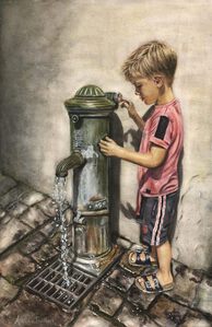 A boy and a waterpump